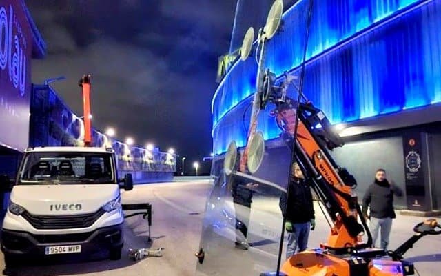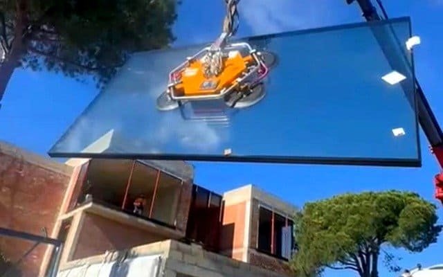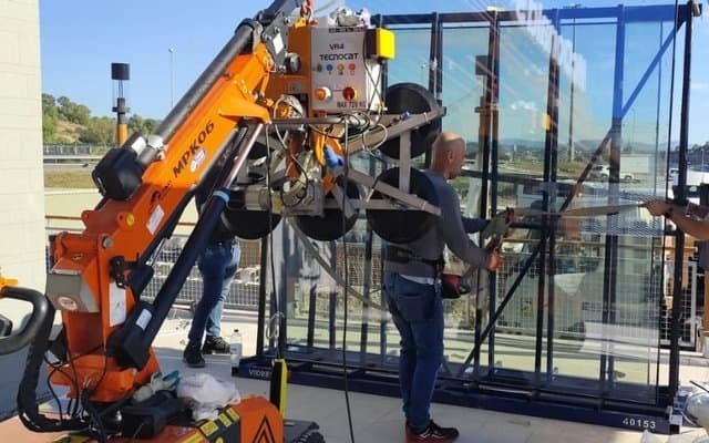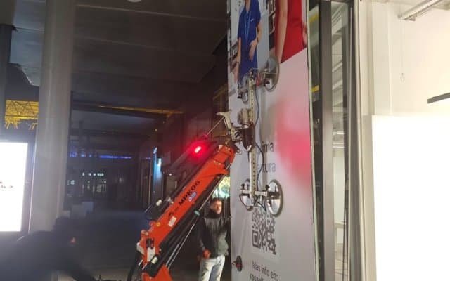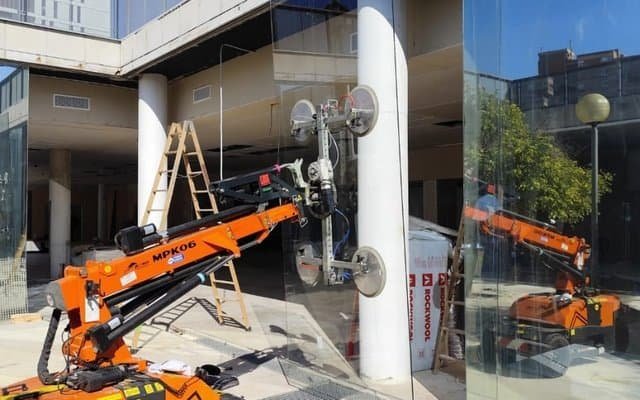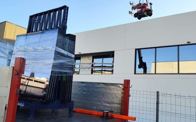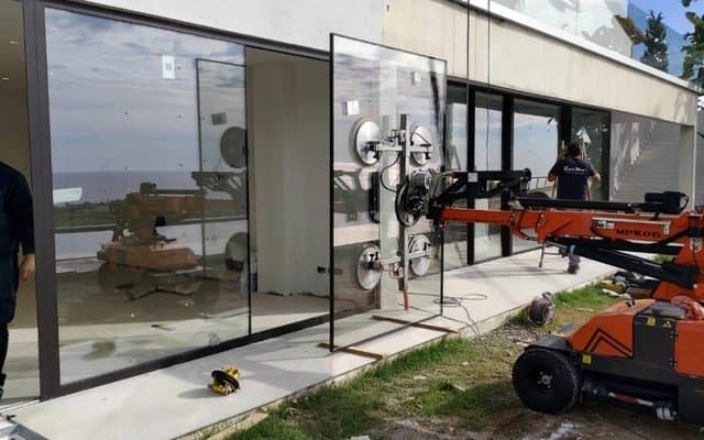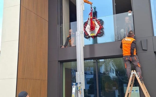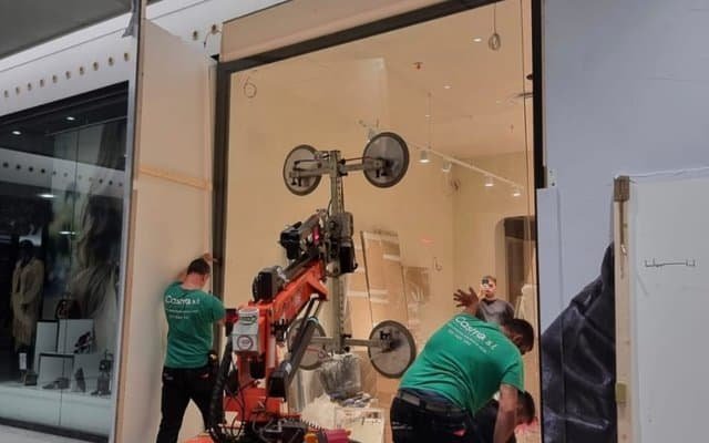 Folosim robot pentru sticla de 600kg si macarale cu ventoze pentru greutati de pana la 1500kg, asigurand manipulare sigura si precisa.